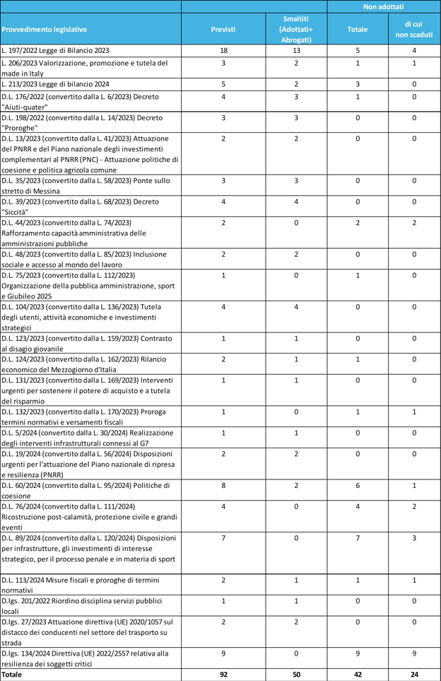 Punto del programma di Governo "Infrastrutture strategiche e utilizzo efficiente delle risorse europee": stato di adozione dei provvedimenti attuativi previsti dalle disposizioni legislative di iniziativa governativa (valori assoluti).
