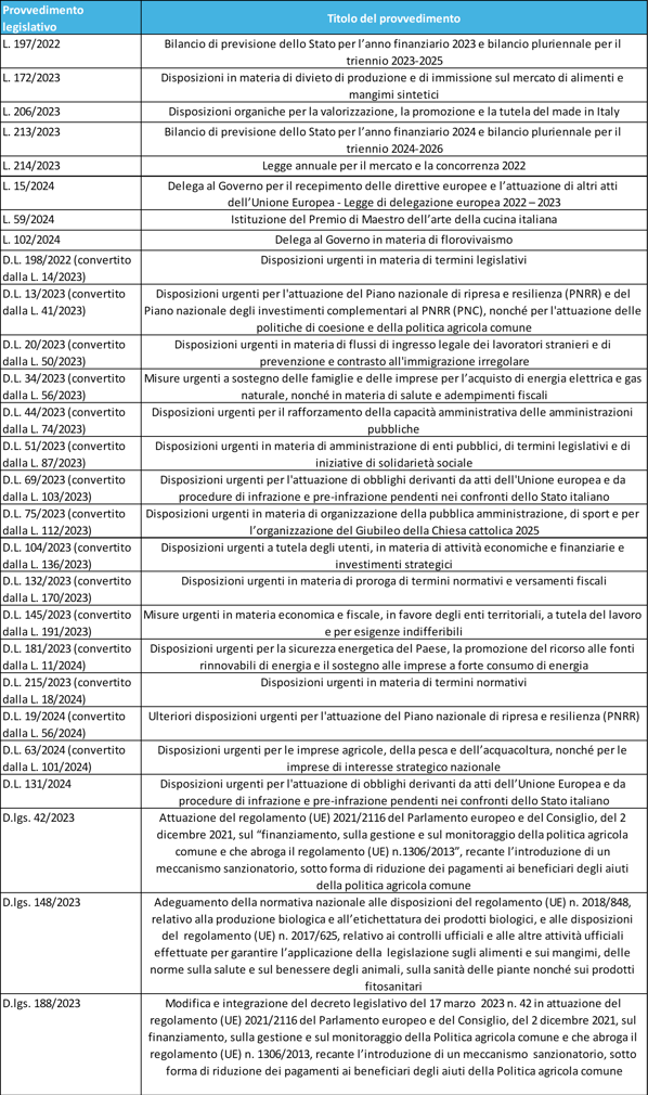 L'Agricoltura: la nostra storia, il nostro futuro - provvedimenti legislativi