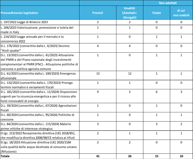 Punto del programma di Governo "La sfida dell'autosufficienza energetica": stato di adozione dei provvedimenti attuativi previsti dalle disposizioni legislative di iniziativa governativa (valori assoluti).