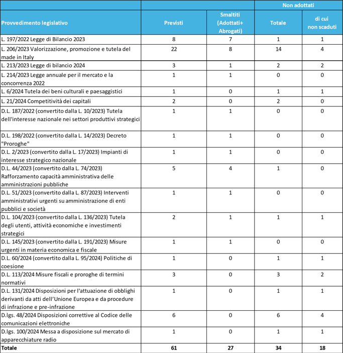 Punto del programma di Governo "Made in Italy, cultura e turismo": stato di adozione dei provvedimenti attuativi previsti dalle disposizioni legislative di iniziativa governativa (valori assoluti)