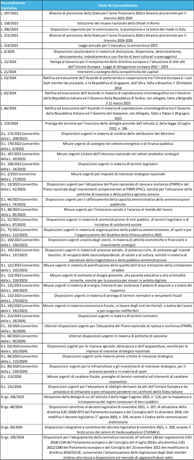 Punto del programma di Governo "Made in Italy, cultura e turismo": provvedimenti legislativi pubblicati in Gazzetta Ufficiale di iniziativa governativa.