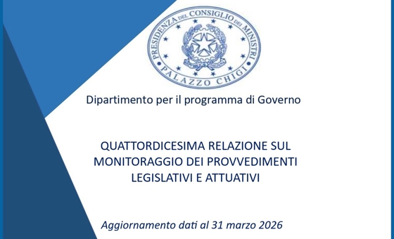 On line la tredicesima Relazione sul monitoraggio dei provvedimenti legislativi e attuativi del Governo Meloni con aggiornamento al 31 dicembre 2025